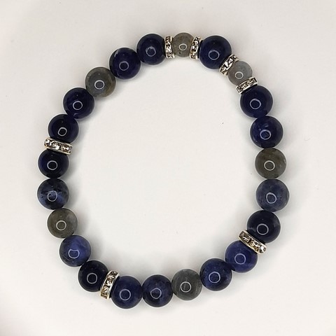 - la labradorite (taille 6 et 8 mm) qui stimule la capacité à ressentir des émotions profondes tout en gardant une vision réaliste des choses,