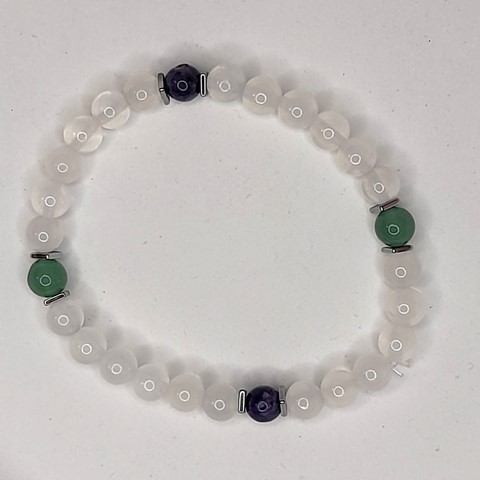 - l'aventurine verte (taille 6 mm) qui est la pierre de l'endormissement.