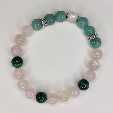 - l'amazonite (taille 8 mm) qui est utile dans les problèmes menstruels et aide à l'accouchement,