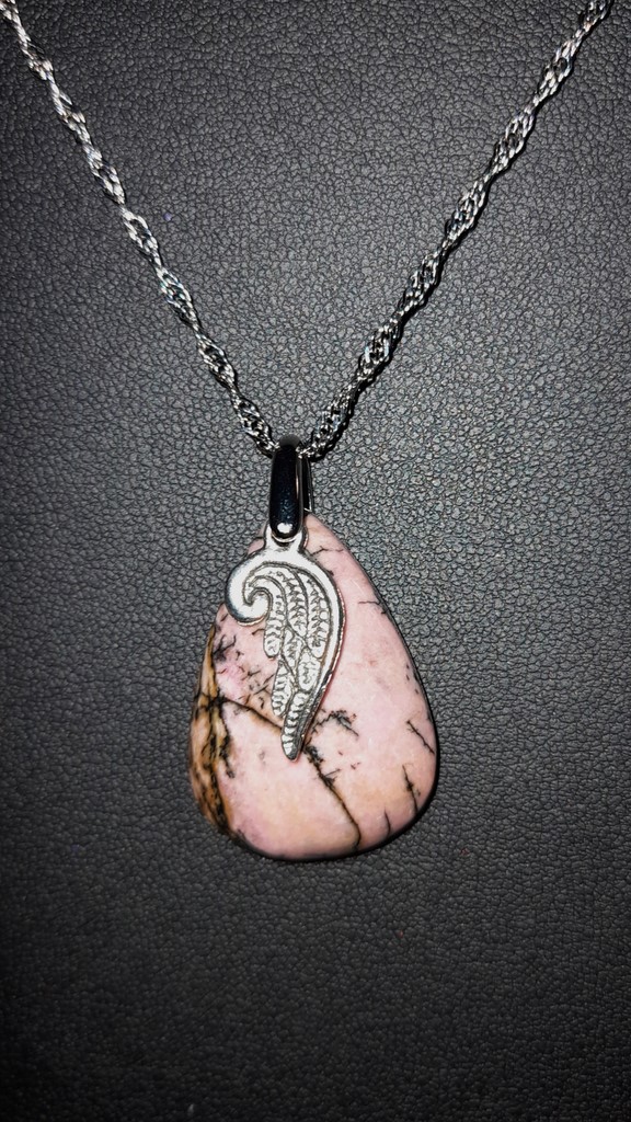 Ce pendentif permet de nous aider à pardonner et guérir les blessures mentales grâce à la rhodonite.